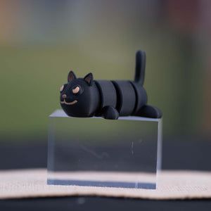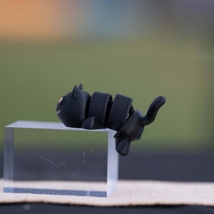 3d printed fidget black cat version 1, articulated in the center (See photos) listing is for item only, props not for sale.