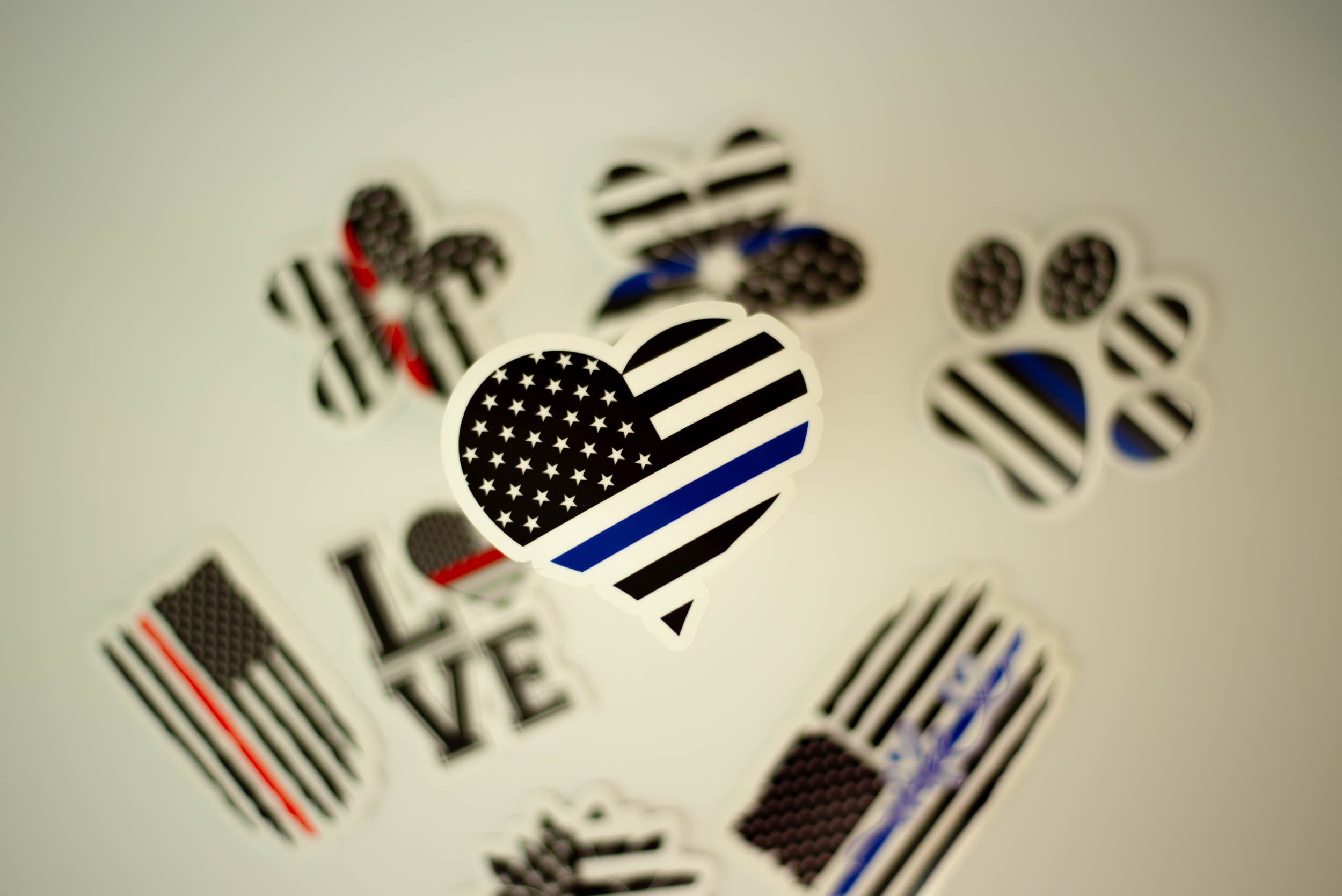 Heart American flag thin blue line sticker in support for officers.