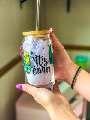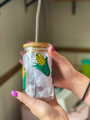 It's Corn glass libbey cup with bamboo lid/seal and straw