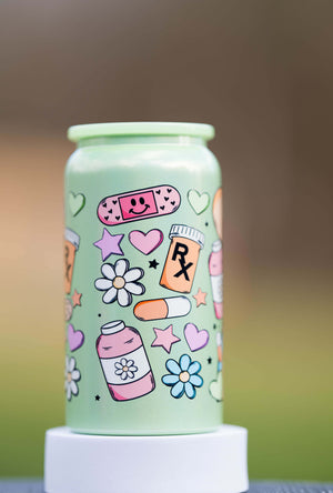 Stainless Steel cup w/ nurse style decals (see pictures), w/ lid. comes w/ straw. listing is for item only, props not for sale.