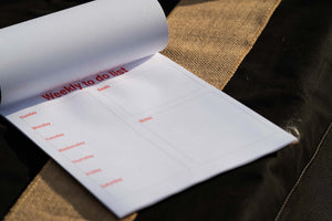 Weekly To-Do Notepad (See pictures) White paper w/ red font. 50 page, 11x8.5. listing is for item only, props not for sale.