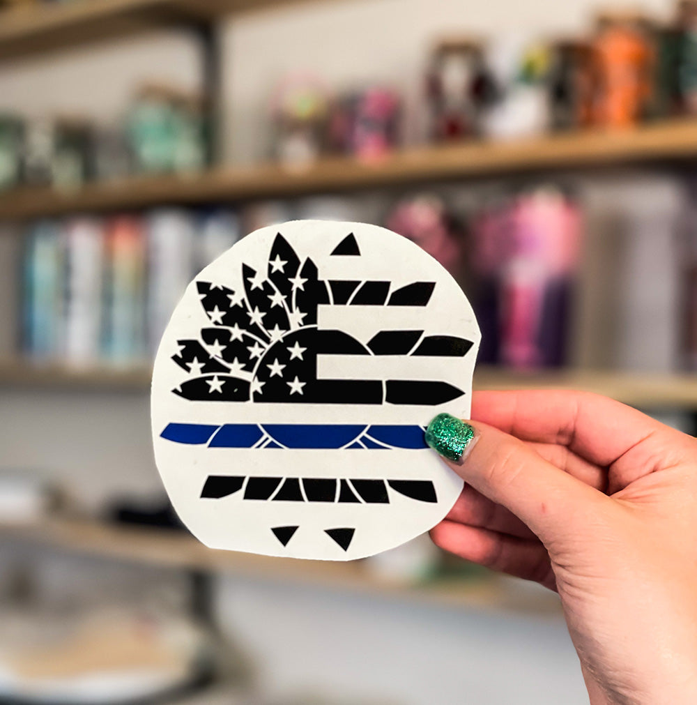 Sunflower american flag decal w/ blue line. dark vinyl.