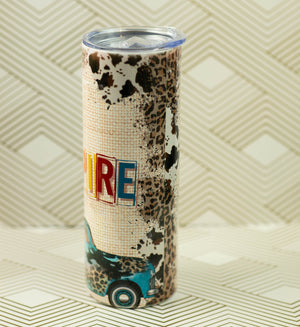 Cup features a fun color pattern with text "Teach Love Inspire" in cutout style. All cups can have custom text in select fonts if requested upon ordering.. Cup comes with stainless steel or plastic straws and plastic lid. (Props not for sale).